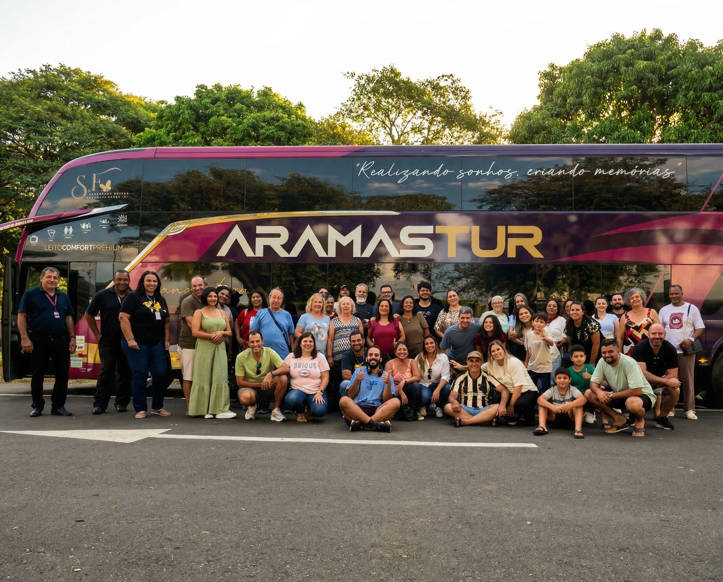 Depois de um dia cheio de paisagens incríveis, o passeio chega ao fim com o retorno da viagem. Todo o grupo segue junto no ônibus, compartilhando as lembranças de uma experiência especial organizada pela Aramas Tur, após conhecer alguns dos lugares mais marcantes de Curitiba e o famoso passeio de trem até Morretes.